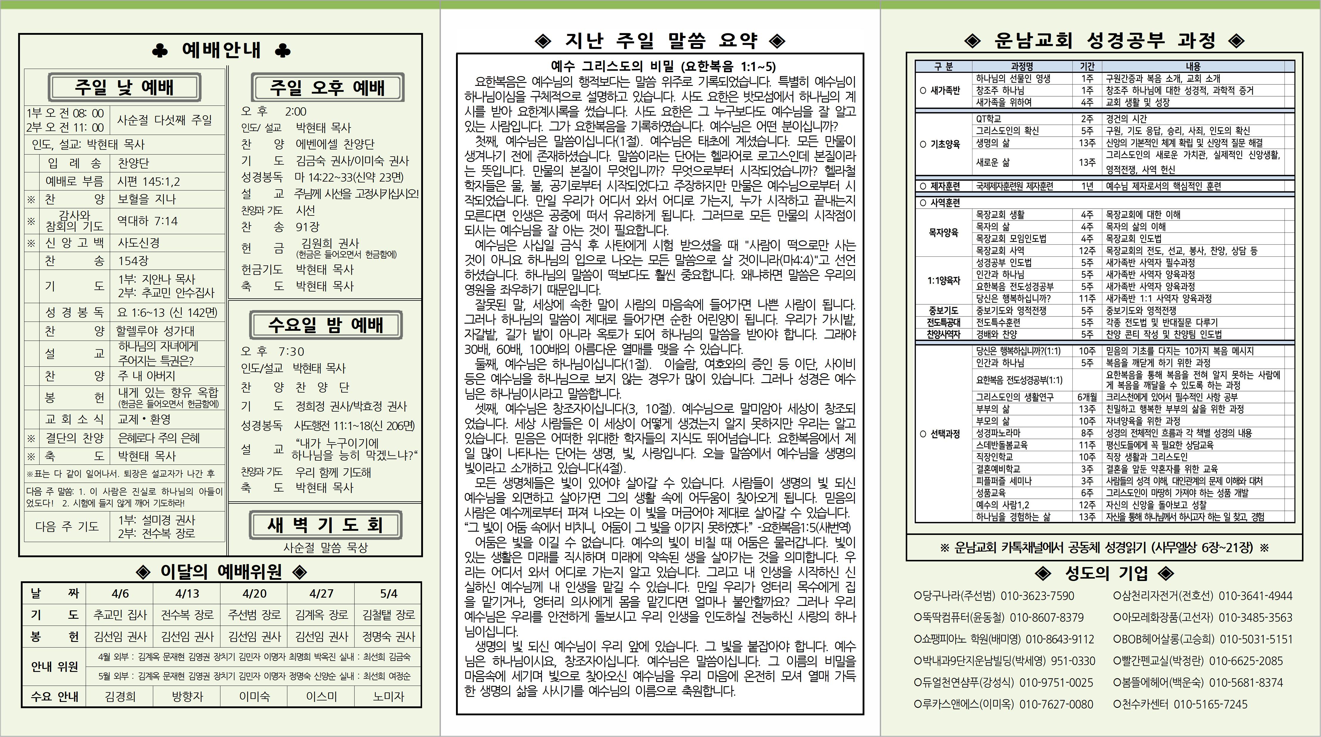4월 6일 교회소식입니다.