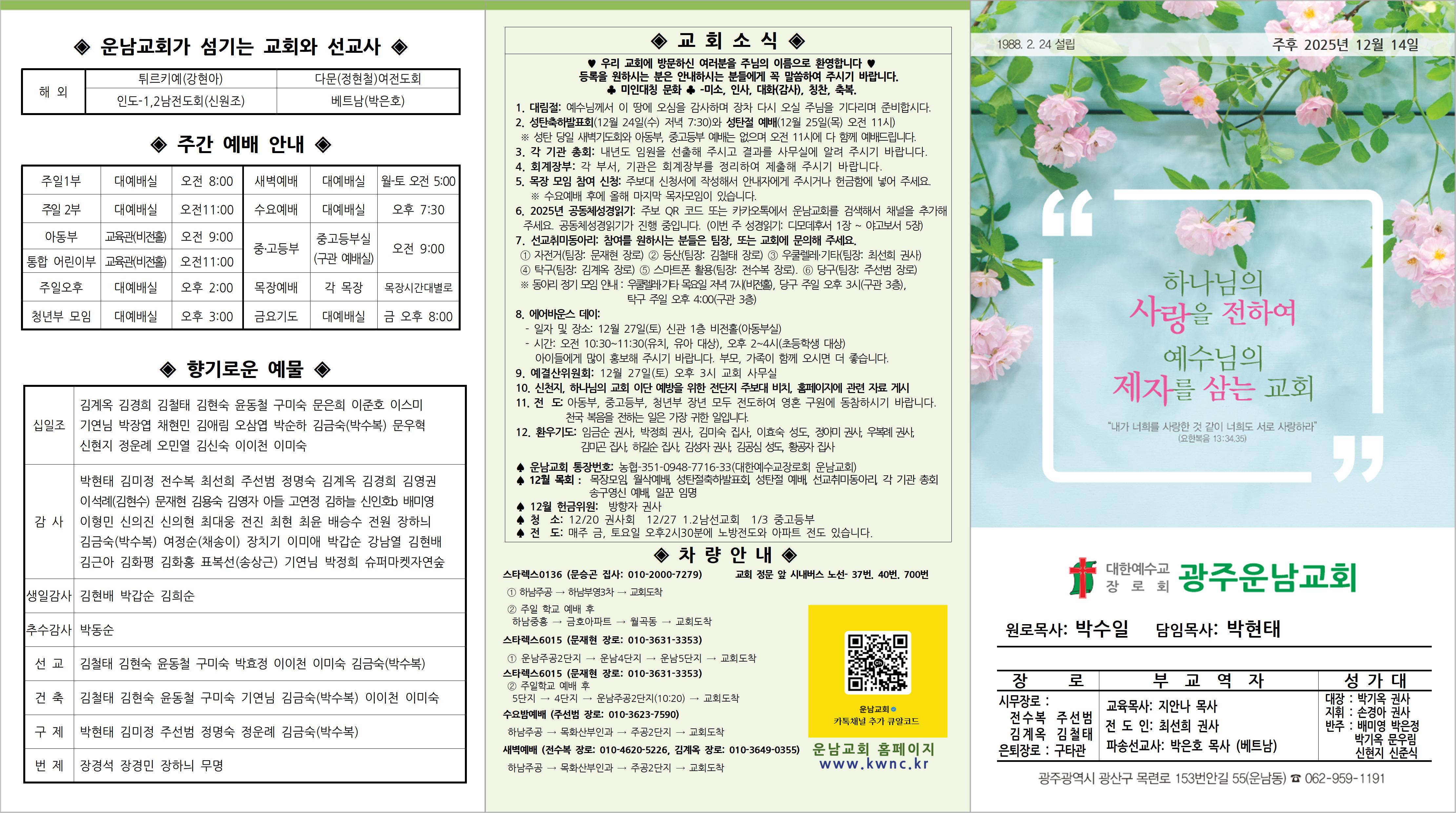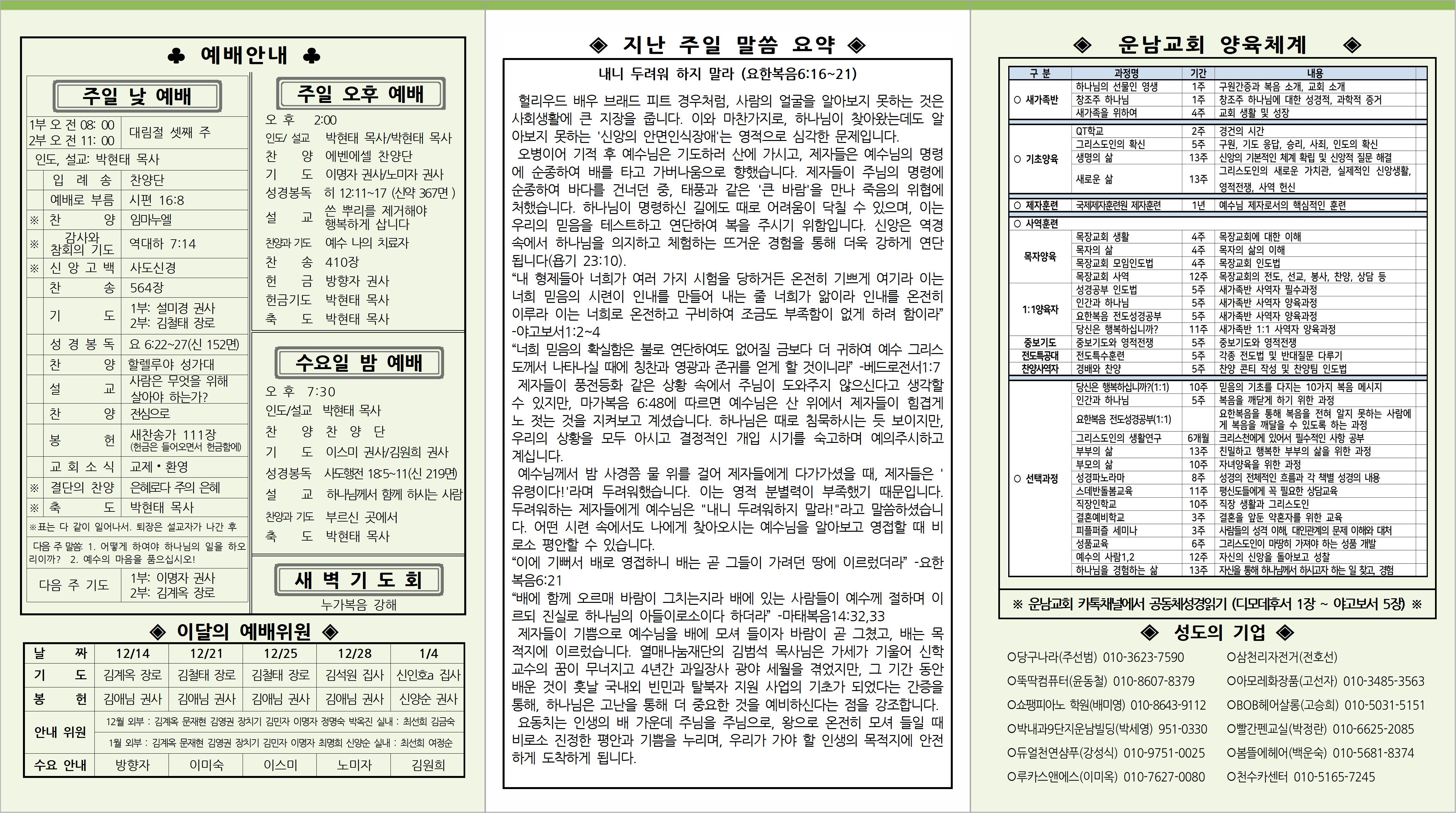 12월 14일 교회소식입니다