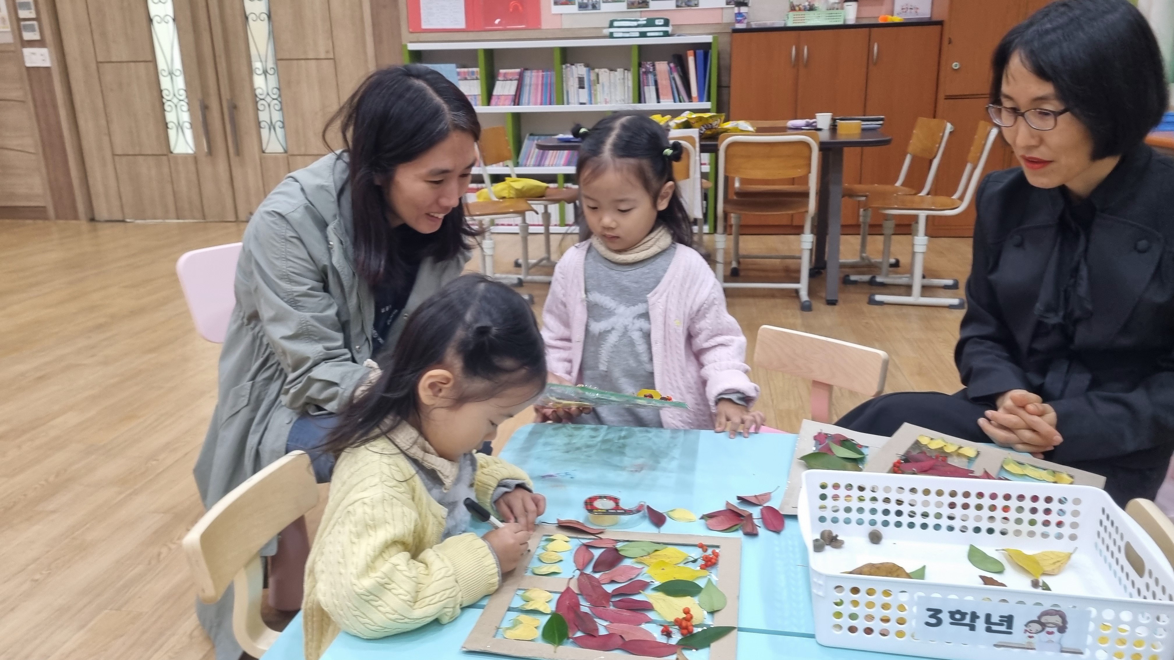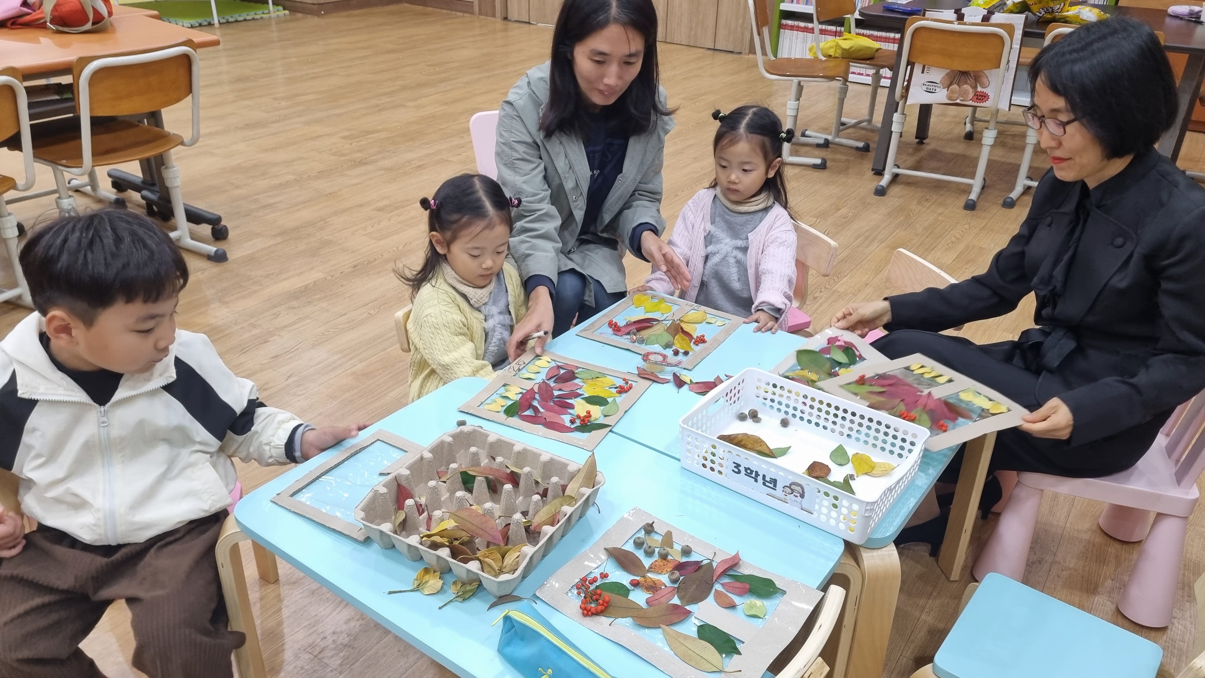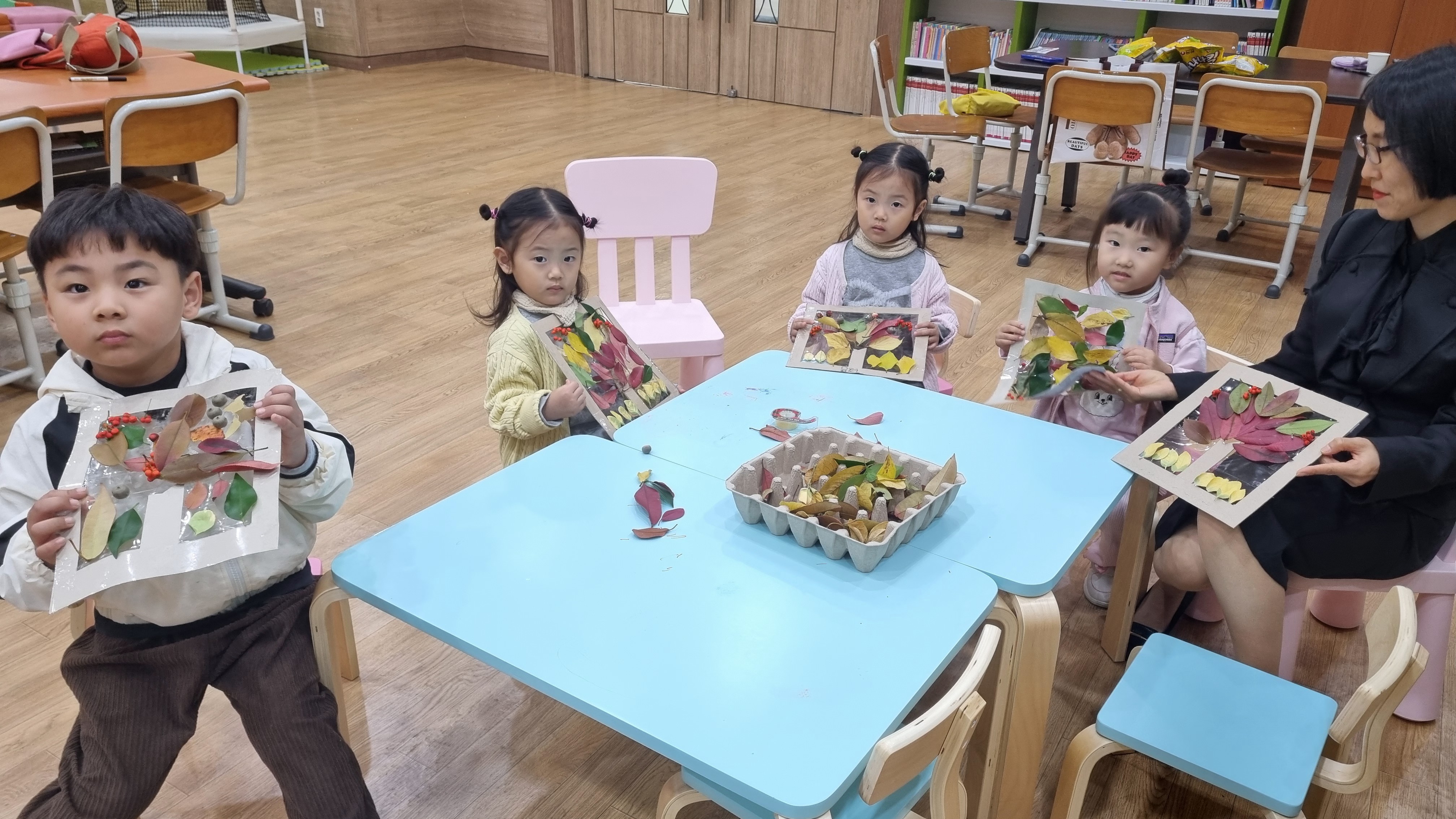 오늘 10월의 가을단풍잎과 도토리로 나무를 만들었어요^^
